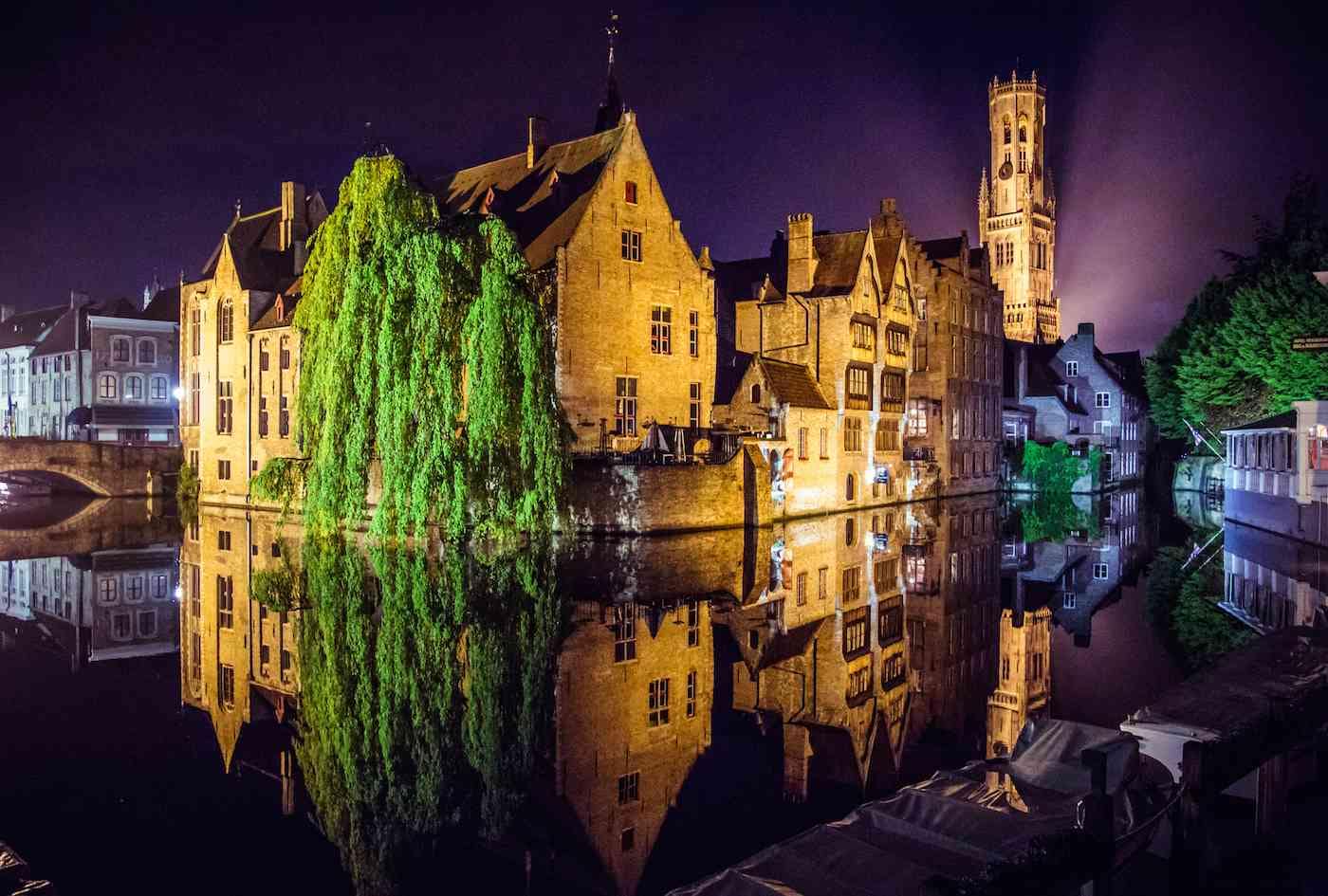 The light of sunset and the canal reflections at night in Bruges are mesmerizing; they lend an air of magic to the already lovely alleys, houses, and statues of the city.