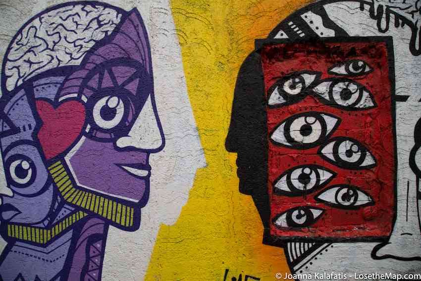 In Athens, you’ll find that the old and the new crash together constantly, and this is the case in Anafiotika. Just as you’ll find a trendy bar right under the millennia-old Acropolis, or an underground rock club a few steps from a centuries-old church, you’ll find beautiful street art all over the tiny alleys of one of Athens’ oldest neighborhoods.