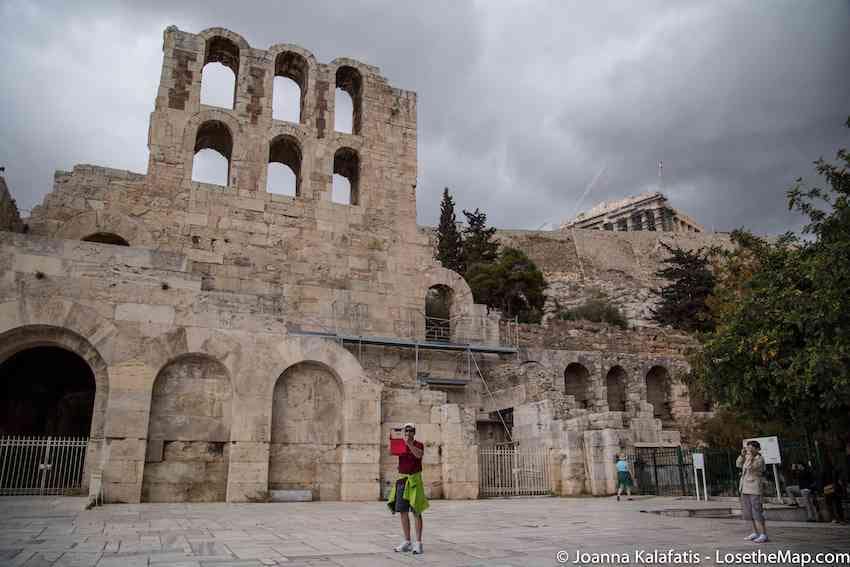 Now it was time for the crown jewel. I got a stunning view of the Acropolis, and explored the ruins below as well. The Acropolis has quite a few historic buildings surrounding it, like the Theater of Herod Atticus (Ηρὠδειο) below – which still hosts performances.
