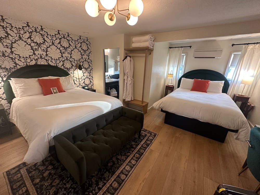 Features like hardwood flooring, and a tasteful rug added to the charm of the room. I also appreciated small touches like a vintage-looking phone and alarm clock. Best of all, I think my picky over-30-year-old-back got one of the best nights of sleep ever. So they’re doing something right with the pillows and mattresses.