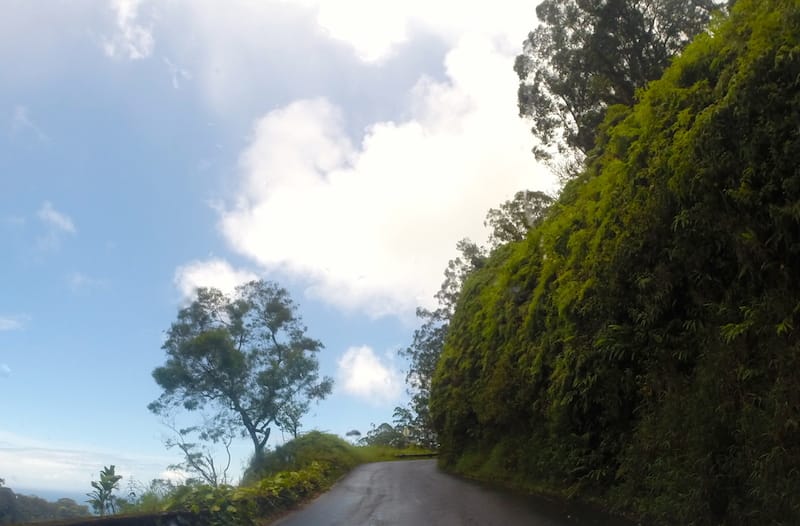 Many tourists are reluctant to take the road due to it’s narrowness and the lack of visibility around its hairpin turns, not to mention the steep drops to the ocean visible from the car window. If most of your driving experience is limited to wide suburban roads and four lane highways, the road may be somewhat intimidating, but I don’t think it was nearly as dangerous as the many warnings made it sound. Then again, I have also become used to mountain-clinging Greek roads on which 1) roadside barriers are considered a fanciful and unnecessary expense 2) drivers think 70 mph is a perfectly reasonable speed with which to take 180 degree turns, and 3) a “two-way” road designation usually means a Fiat and a motorcycle can maybe pass each other with a roomy two inches to spare. If your driving experience also includes roads like that, you’ll find yourself wondering why the Road to Hana needs any sort of safety warnings at all.