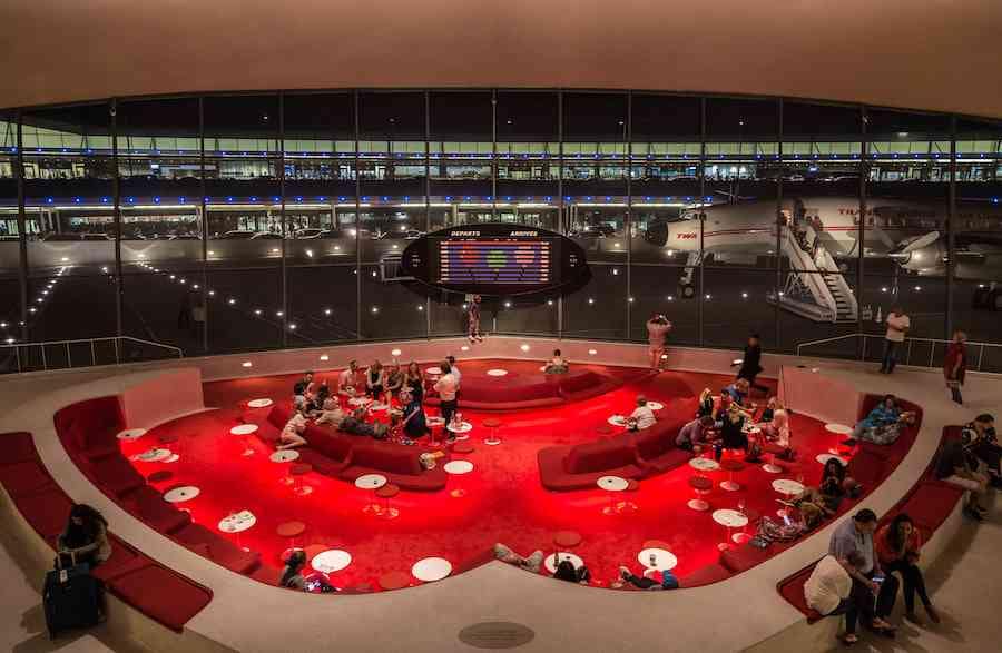 At night, the aptly named Sunken Lounge in front of the throwback departures/arrivals board has a great drink selection and view of the old, lit up, TWA runway. It’s a great place to kick back and relax at the end of the day.