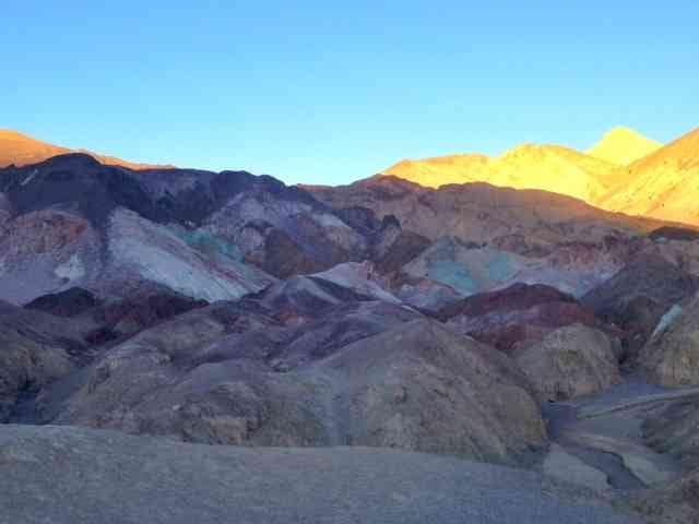 I got back into the car and drove on towards Furnace Creek, where I was hoping the Furnace Creek Inn would have a room available. On the way I saw a sign pointing towards ‘Artists’ Drive’, and followed it to see what the drive would be like. It was about half an hour before sunset, and the light hit the canyon beautifully, making it look like paint cans had been spilled all over the rocks.