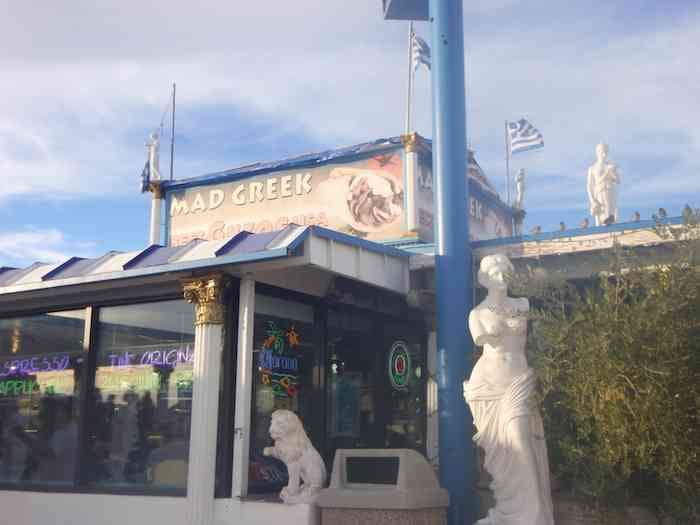 I drove four and a half hours northeast of Los Angeles this past weekend to visit Death Valley, California, known for being the lowest, driest, and hottest place in North America. Which is why I decided it would be better to go in February when the temperature would be comfortably under 120 F. The trip started to get interesting after I exited he highway and drove onto Death Valley Rd. at Baker, California. Death Valley Road begins right where ‘The Mad Greek’ is located. If you haven’t seen and/or heard of this place, it’s a restaurant in Baker that serves gyros and other Greek food, mostly to locals and truckers. And has knock-off statues of Apollo and Aphrodite, as well as columns and Greek flags, decorating it on the outside. Seeing this place in the middle of the California desert feels quite nearly insane.