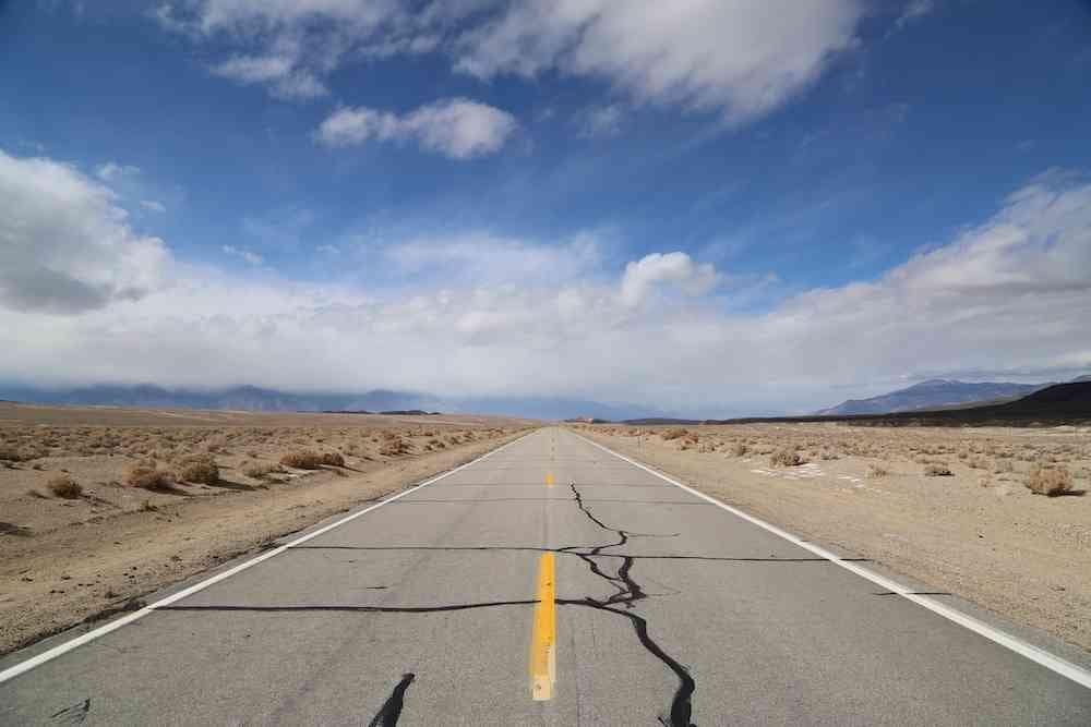 Short route – Head north at the junction and make a stop at Ubehebe (no, you’re not pronouncing it correctly) Crater, then continue on to Teakettle Junction for a few quick photos. This rough road leads to Racetrack Playa, if you want to see the strange ‘moving rocks’ of Death Valley and their trails. Know that heading to the playa is quite a long detour (about 27 miles), and you will have to drive it all the way back as well. After passing Ubehebe (no, you’re probably wrong again) on the way back, keep heading east, and stop at quirky Scotty’s Castle on your way out.