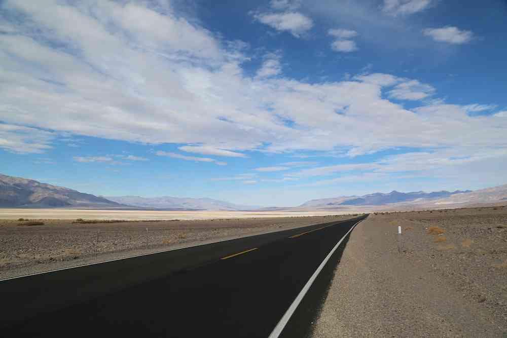 Enter westbound on highway 178, stop at the Badwater Salt Flats, go check in at either The Inn at Death Valley (high budget), The Ranch at Death Valley (medium budget), or the campgrounds (low budget).